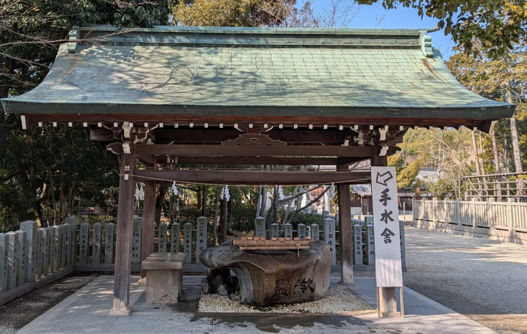 手水舎と「放生(はうじょう)の御池(みいけ)」