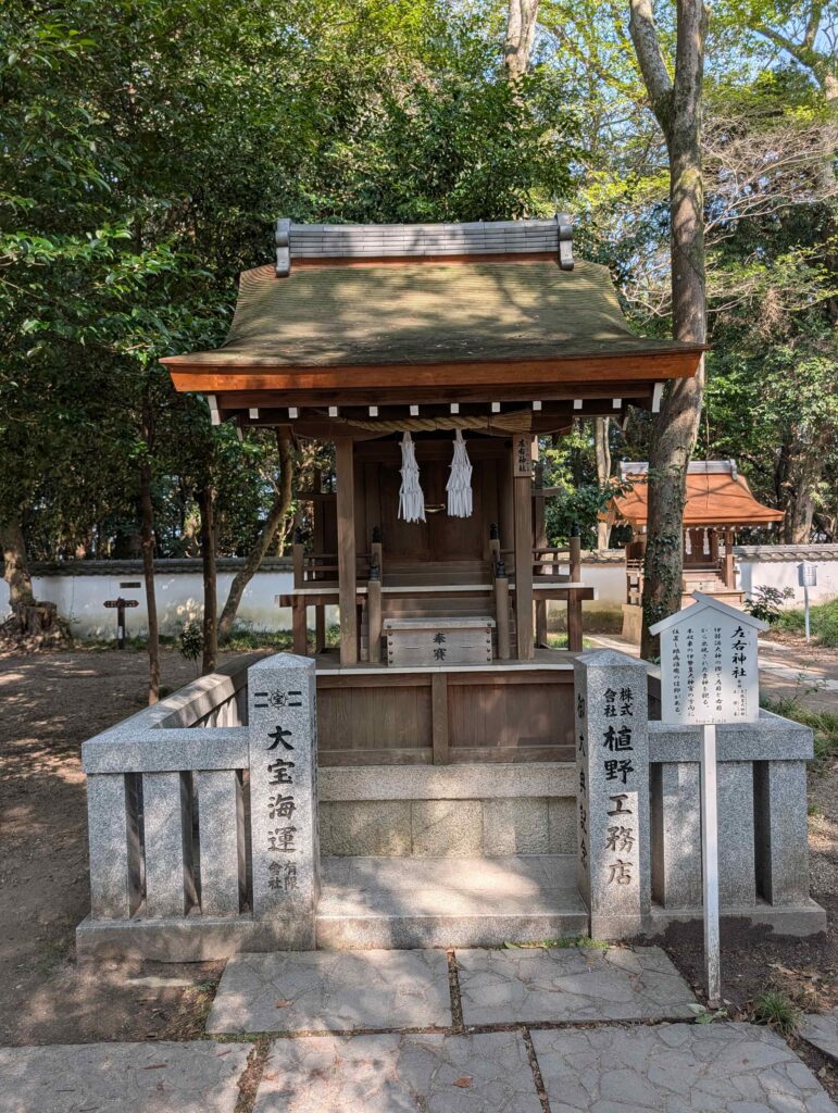 最後にお参りしたのは境内末社の左右(さう)神社です。御祭神は天照大御神(あまてらすおおみかみ)と月読尊(つくよみのみこと)です。「左右」という名前の由来は、伊弉諾大神が黄泉の国から戻って穢れを払うために禊(みそぎ)をしますが、その際に左目と右目から出現されたのがこの二柱の神様であったことによります。眼病治癒の信仰があるとのことでしたので、4月に予定している妻の目の手術が無事成功するようにお祈りをしました。