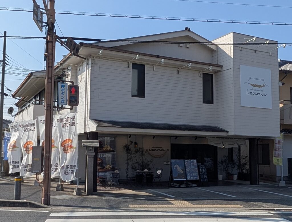 参拝終了後、鳥居をくぐって外に出ると、信号を渡った目の前にある「cafe&restaurant izana」でランチを頂きました。