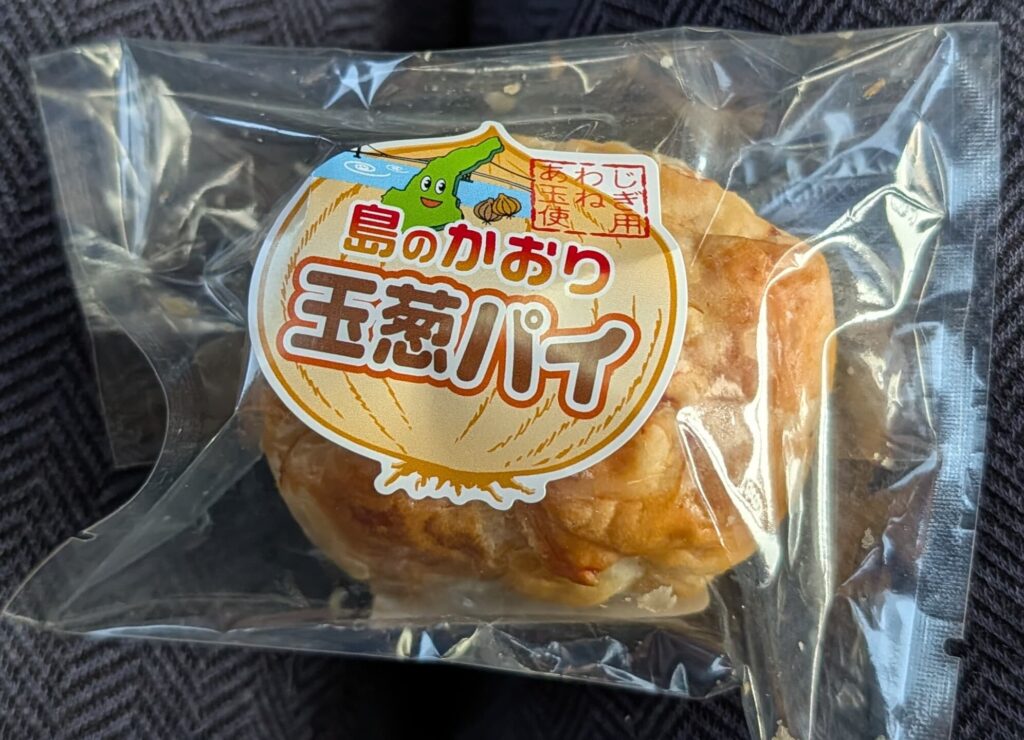 帰りのバスで購入した「玉葱パイ」を食べましたが、白餡にあわじ玉葱の風味が意外にマッチして、こちらも美味しかったです。