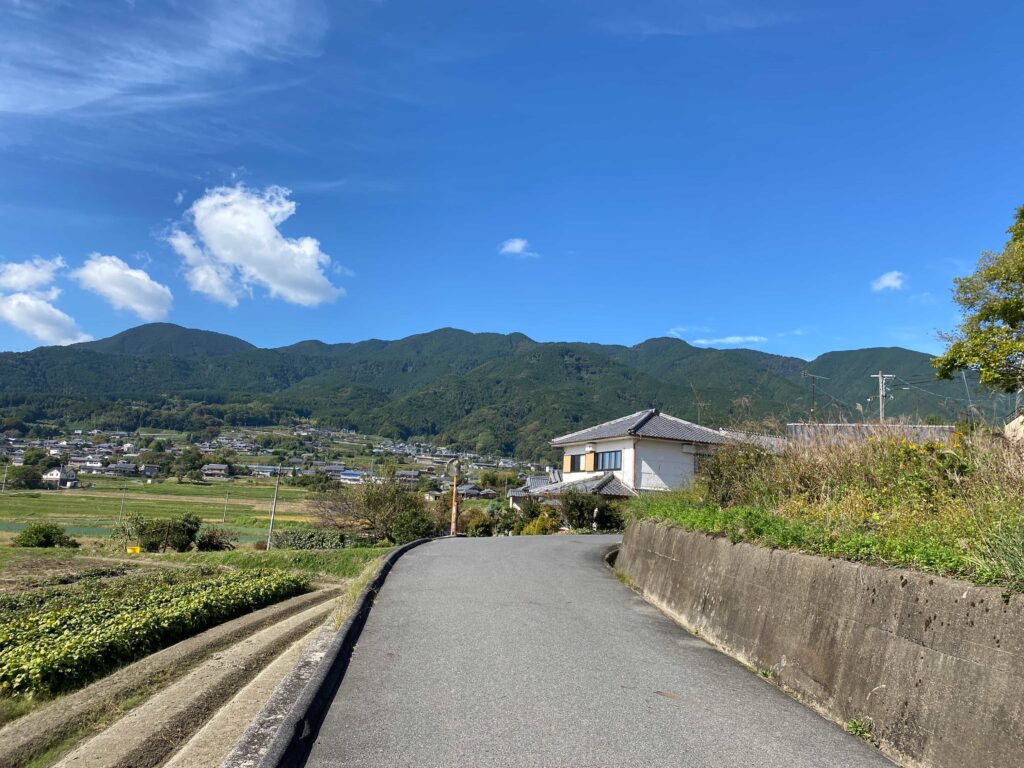 バス停から約15分程度かかりましたが、天気がよく暑くもなかったため、遠くの山を見ながら気持ちよく歩きました。